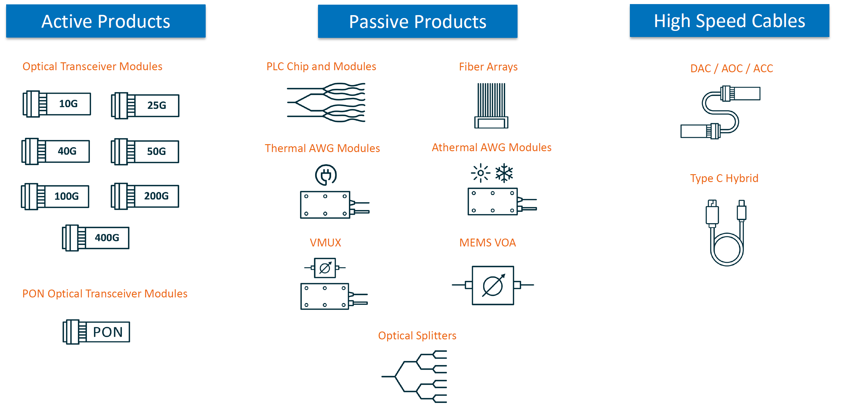光通信用の光パッシブ/光アクティブ製品を数多く取り揃えてます。