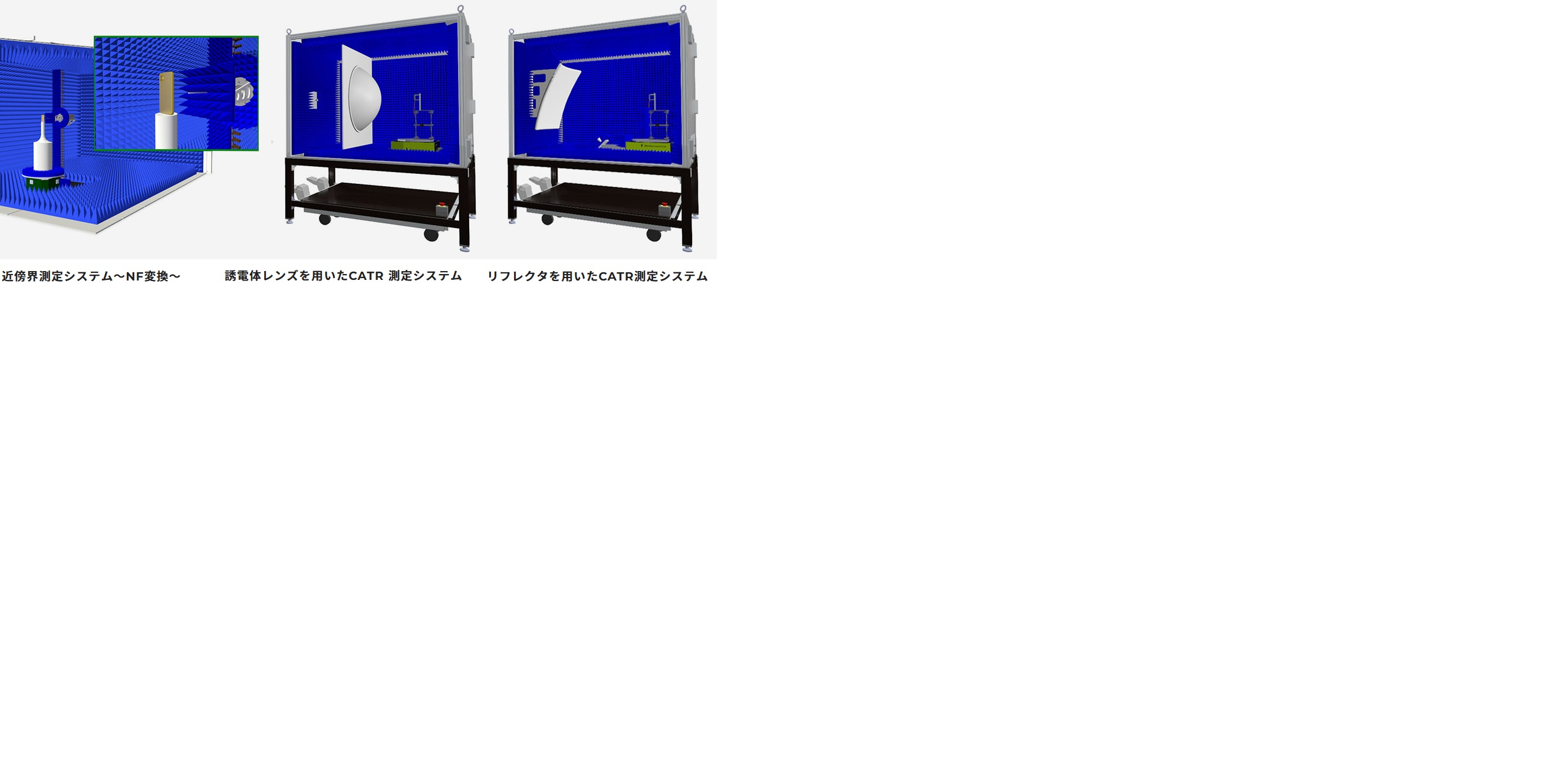 従来型の金属リフレクタを使用し平面波を生成するCATRやMWF独自開発のレンズアンテナを使用したCATR計測システムをご提供いたします。