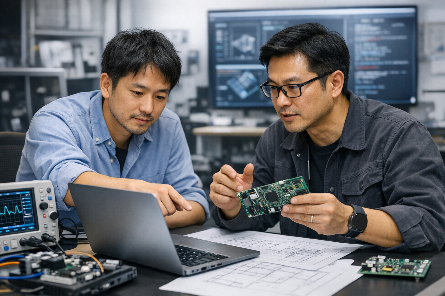 発要件定義に基づいて、回路設計やAW設計からアンテナを含めたハードウェア一式の開発、ドライバやファームを含めたソフトウェア一式の開発を手掛けます。評価ボードやSDR等を活用した性能検証用のPoC、試作機の開発も対応しております。