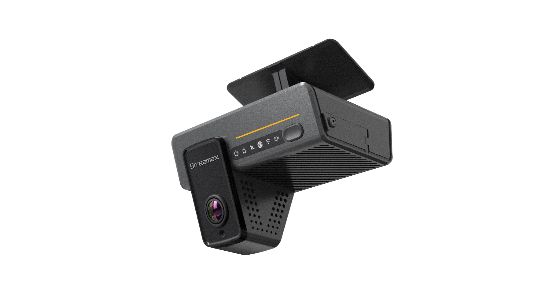 It features dual cameras facing both inside and outside the vehicle, powered by AI technology.